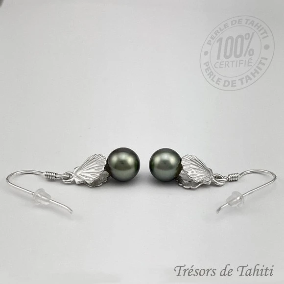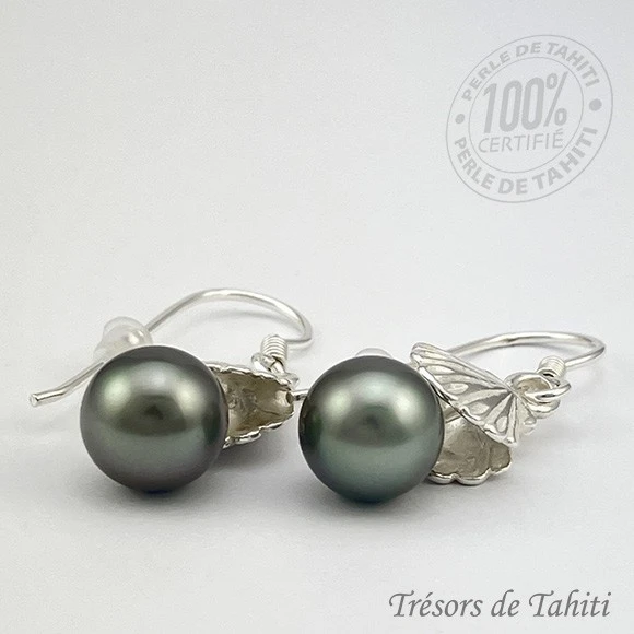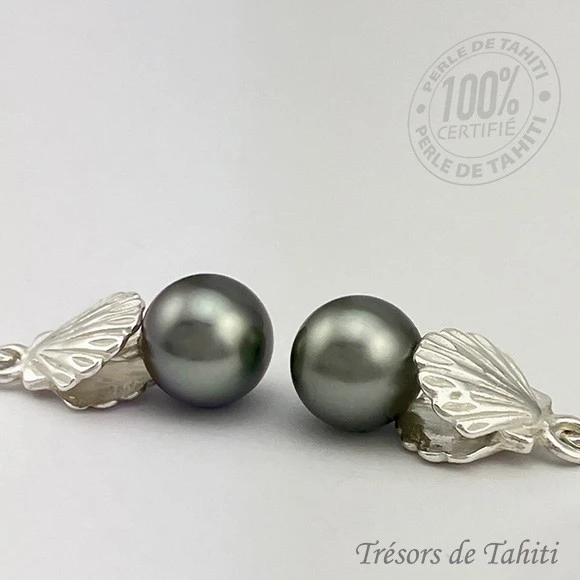 La Boutique du MonoĂŻ a confectionnĂ© pour vous cette paire de Boucles d’Oreilles avec Perles de Tahiti, Poerava en tahitien, certifiĂ©es de PolynĂ©sie française.