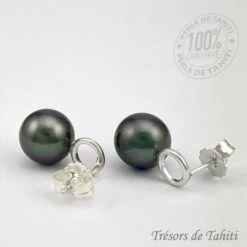 Boucles D’oreilles Perles De Tahiti Semi Rondes Argent TT385