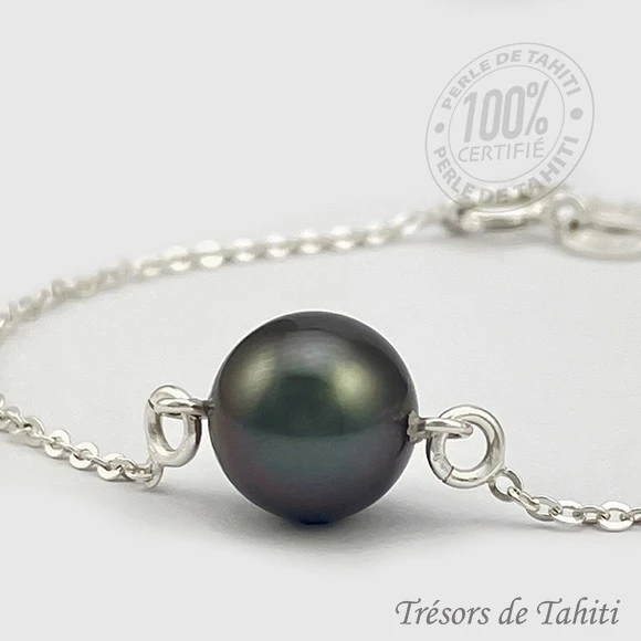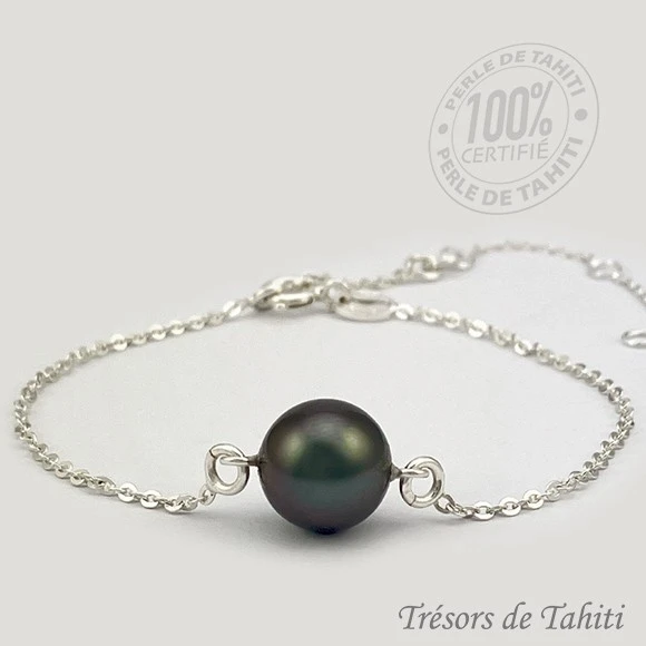 La Boutique du Monoï a confectionné pour vous ce bracelet en Perle de Tahiti, Poerava en tahitien, certifiée de Polynésie française.