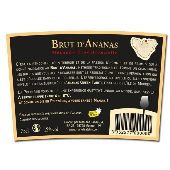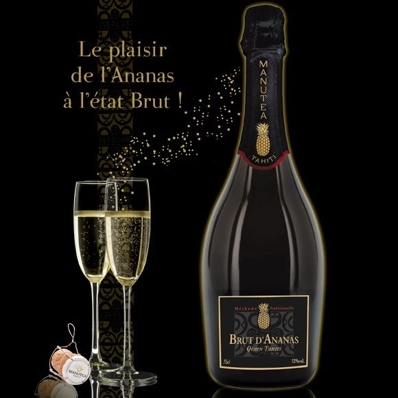 La Boutique du Monoï a sélectionné pour vous ce nouveau Brut d’Ananas venu de l’Usine de Jus de Fruits de Moorea, le dernier-né de la gamme des vins Manutea aux Ananas de Moorea ! C’est en effet à partir du Queen Tahiti, cette variété d’exception, que ce vin pétillant a été conçu, au pied du mont Rotui, dans le chai Manutea au plus proche des plantations.