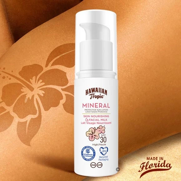 La Boutique du Monoï a sélectionné pour vous ce lait minéral protecteur solaire Hawaiian Tropic SPF 30 anti UVA/UVB pour le visage.