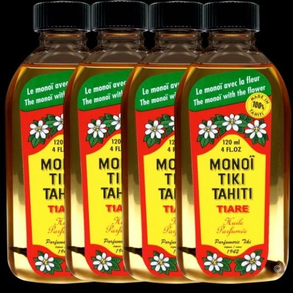 La Boutique du Monoï a confectionné pour vous ce lot économique de 4 Monoï Tiki Tahiti 120mL fabriqués à Tahiti par La Parfumerie Tiki depuis 1942.