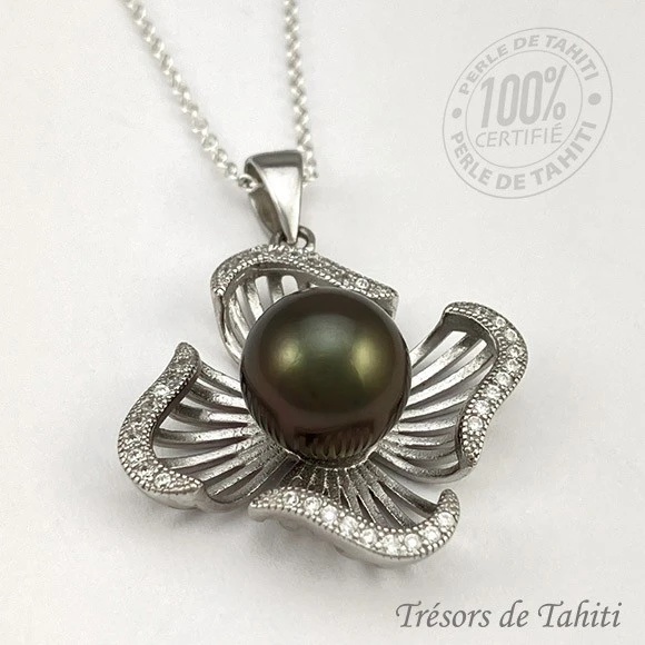 La Boutique du Monoï a confectionné pour vous ce collier en Perle de Tahiti, Poerava en tahitien, certifiée de Polynésie française.