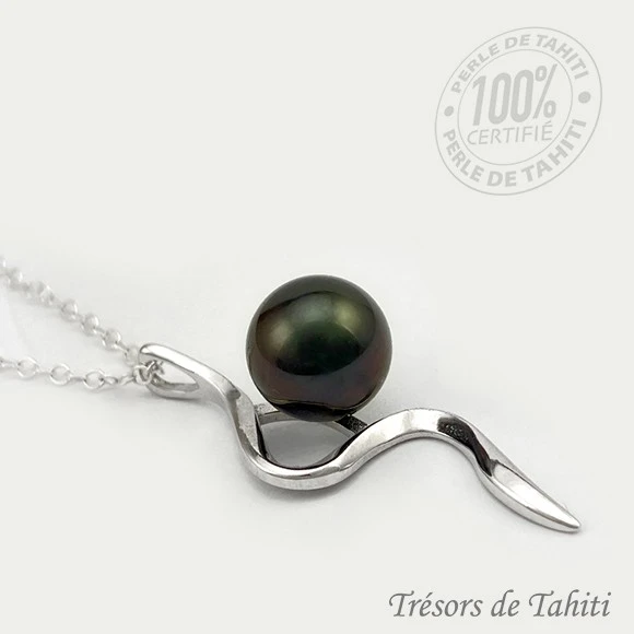La Boutique du Monoï a confectionné pour vous ce collier en Perle de Tahiti, Poerava en tahitien, certifiée de Polynésie française.